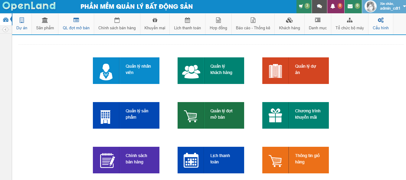 Phần mềm quản lý bất động sản Openland có thể đáp ứng đầy đủ các yêu cầu của quản lý bất động sản, quản lý hợp đồng giao dịch bất động sản, Quản lý các nghiệp vụ giữ chỗ, đặt cọc, lịch thanh toán và công nợ chi tiết cho từng dịch vụ… giúp minh bạch, đơn giản và chuyên nghiệp hóa trong quá trình vận hành. Ngoài ra phần mềm còn hỗ trợ chiết xuất các báo cáo tổng hợp tình trạng giao dịch, báo cáo chi tiết nghiệp vụ giữ chỗ, đặt cọc, hợp đồng chuyển  nhượng, báo cáo doanh thu và còn nhiều các nội dung báo cáo khác được hiển thị sinh động dưới nhiều dạng biểu đồ.